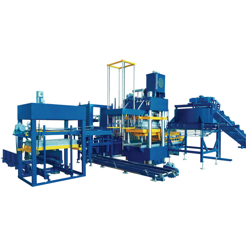 Proizvodna linija dopolnjuje ujemanje formule s sistemom doziranja in mešanja, tekoči trak in dvižno vedro pa se uporabljata za mešanje v mešalniku, mešani material pa se transportira v mešalnik tkanin. Glavni drsnik HP-600T/800T Hermetic Press Machine zdrsne ven. Ko je tkanina raztovorjena, se material skozi kvantitativno vedro spusti v okvir kalupa drsnika. Drsnik zdrsne na dno okvirja za oblikovanje s filtrirnim stiskanjem. Paleta se pošlje na drugo postajo drsnika skozi podajalnik plošč in razkalupljenje je končano, ko je tkanina kvantitativno raztovorjena. Dostava palete in zlaganje plošče (z mokrimi zidaki) se zaključita med tlačnim brizganjem.